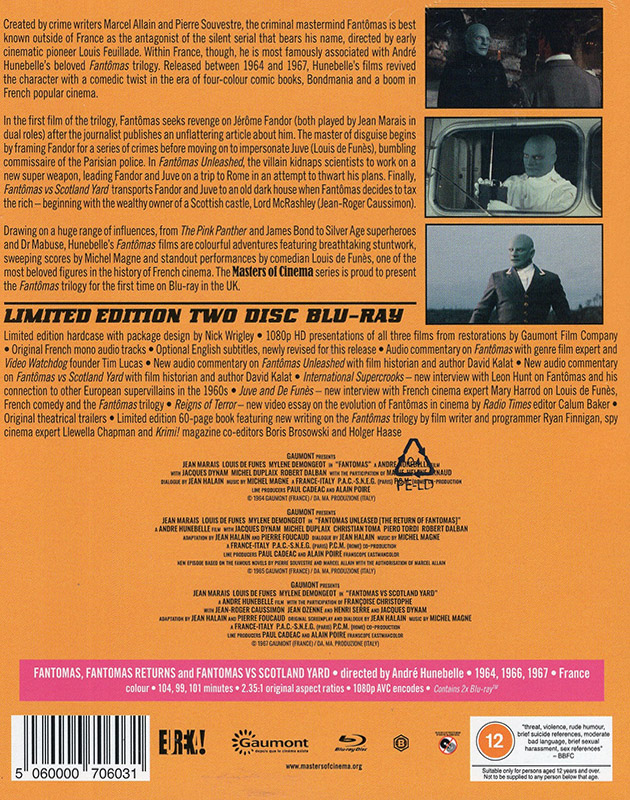 Note: Limited Edition Hardbound Set [2000 copies] * Limited edition hardcase with package design by Nick Wrigley * Limited edition 60-page book featuring new writing on the Fantômas trilogy by film writer and programmer Ryan Finnigan, spy cinema expert Llewella Chapman and Krimi! magazine co-editors Boris Brosowski and Holger Haase